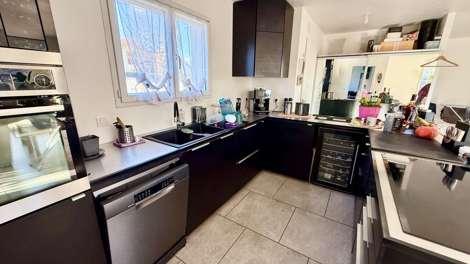 Depuis le salon, on accède à une belle terrasse par une grande baie vitrée. Garage. Portail électrique.