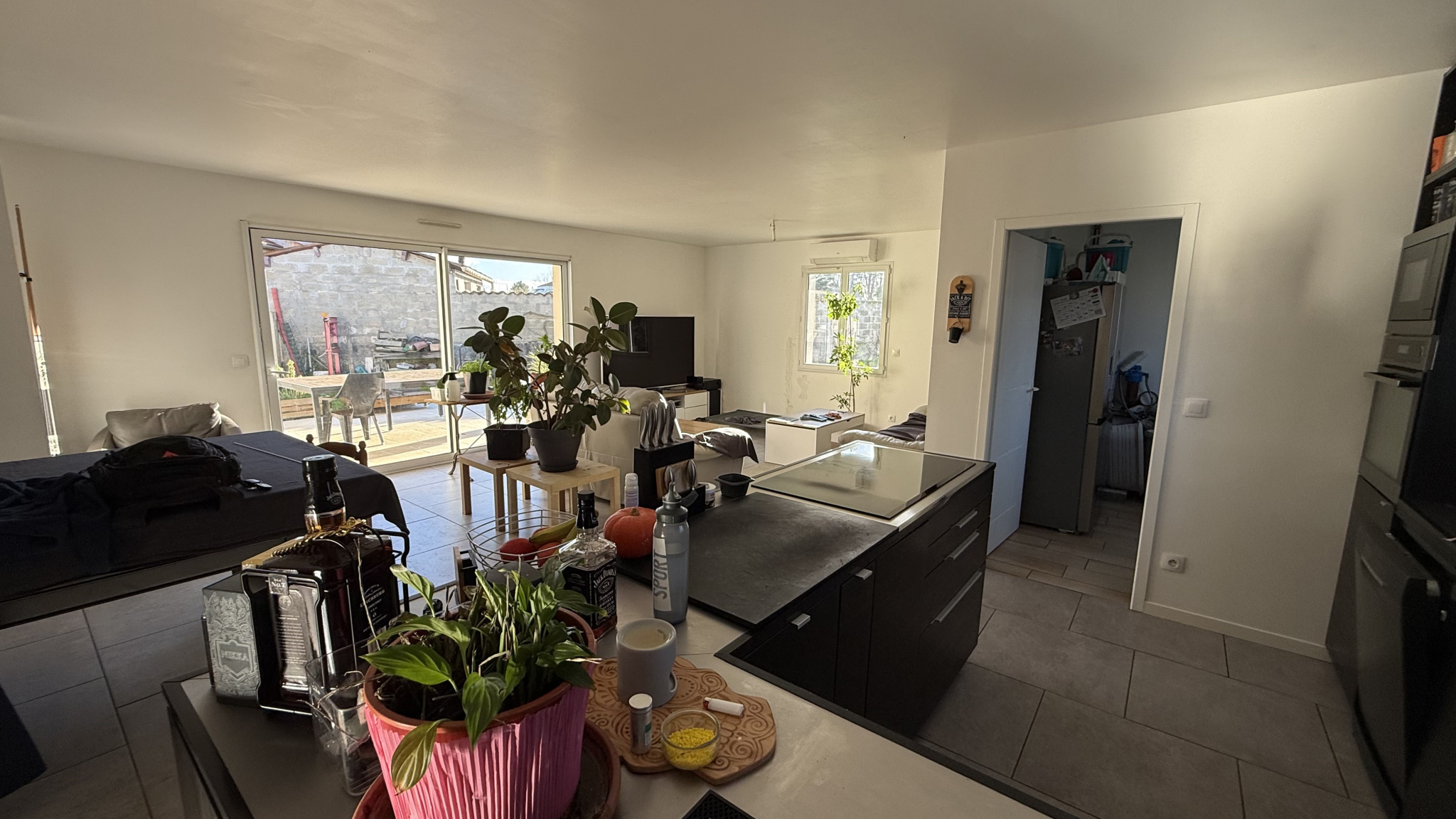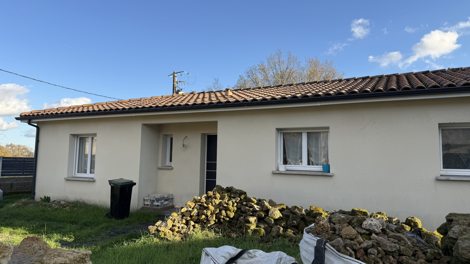 Aux portes de Bazas maison de plain-pied de 125 m² construite en 2016. Elle se compose d'une pièce de vie avec cuisine ouverte et équipée, 4 chambres dont une suite avec dressing et salle d'eau, deuxième salle de bains indépendante avec douche et baignoire, WC séparé, cellier.