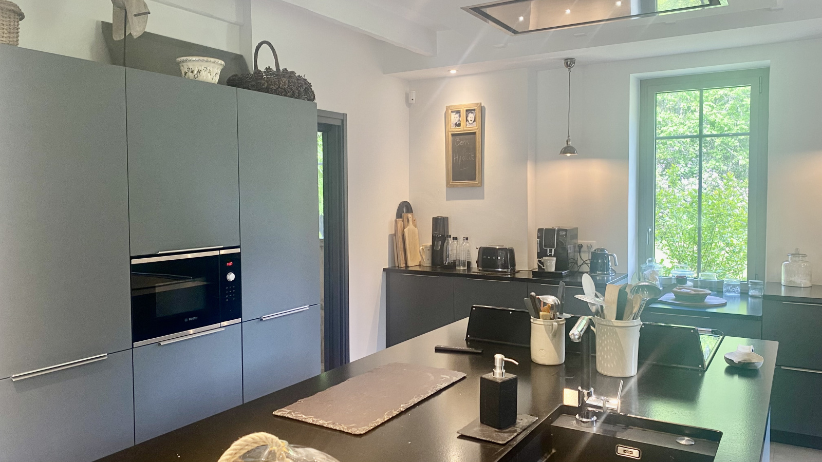 La maison de maître a été entièrement rénovée avec gôut, alliant charme et confort. D'environ 200m2 elle est composée au rdc d'une entrée traversante, double salon avec cheminée ancienne en pierre, magnifique cuisine ouverte sur la salle à manger, cellier/buanderie, toilettes invités et verrière avec entrée laterale. À l'étage pallier, 4 chambres (dont une avec dressing), salle de bain avec baignoire et douche, WC séparé. Carreaux de Gironde et parquet à l'étage.