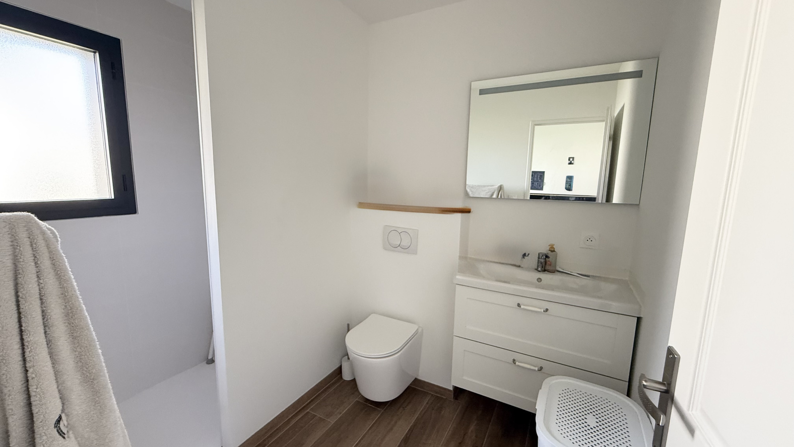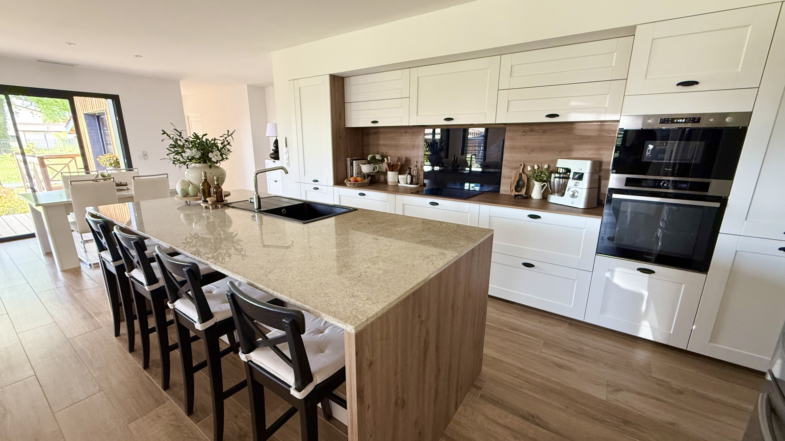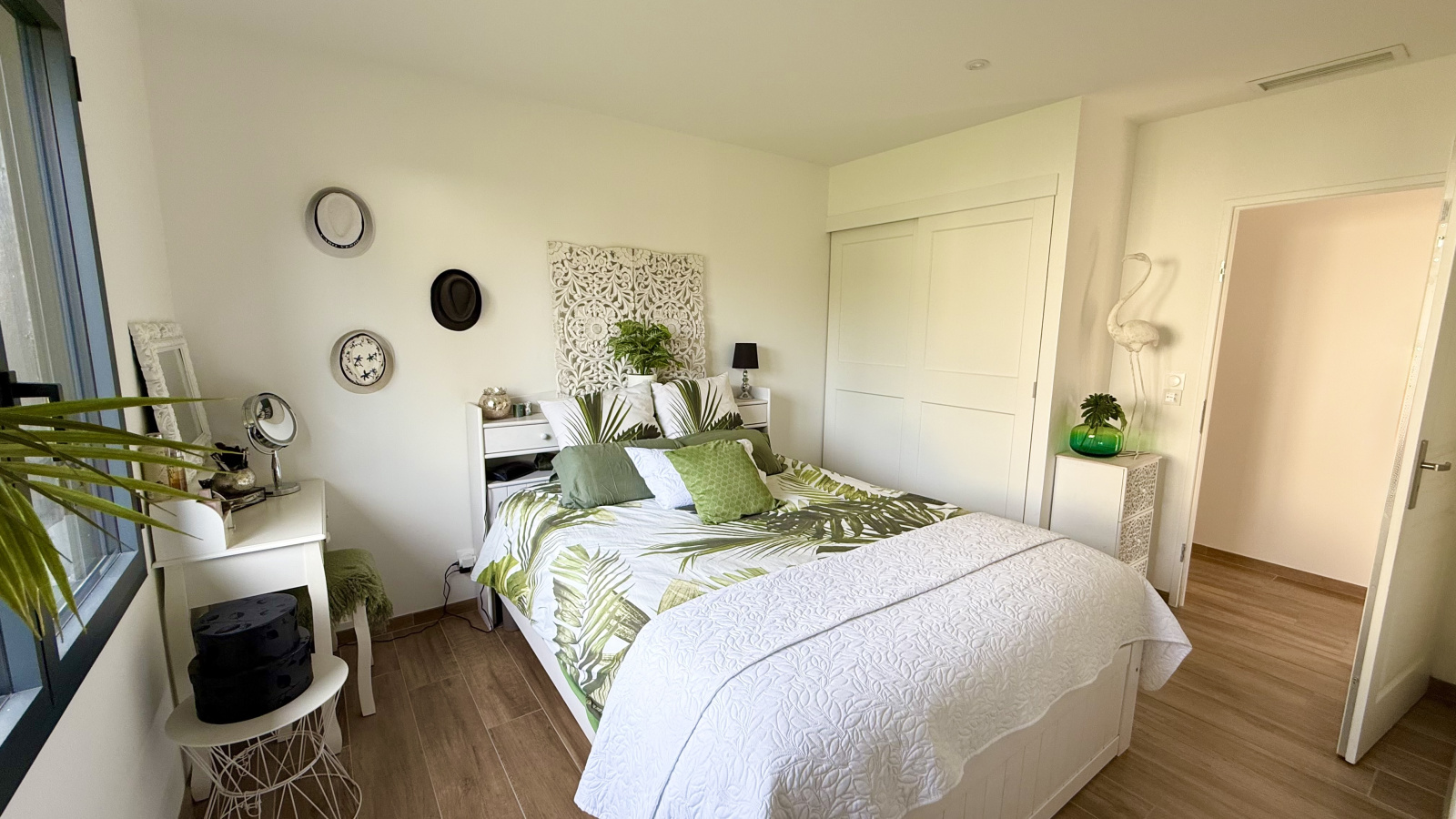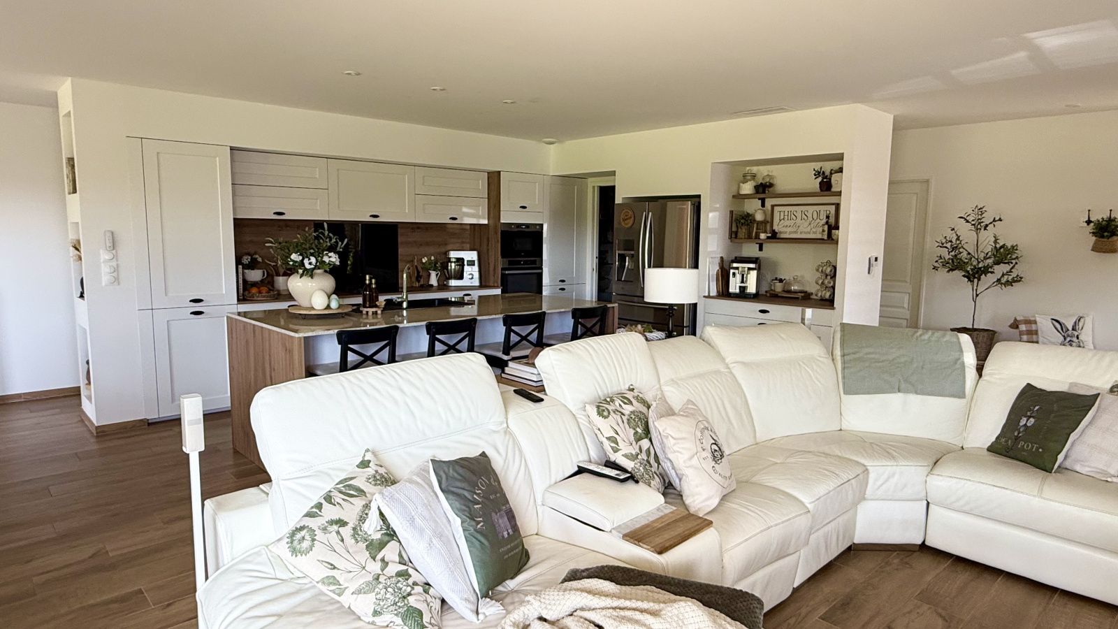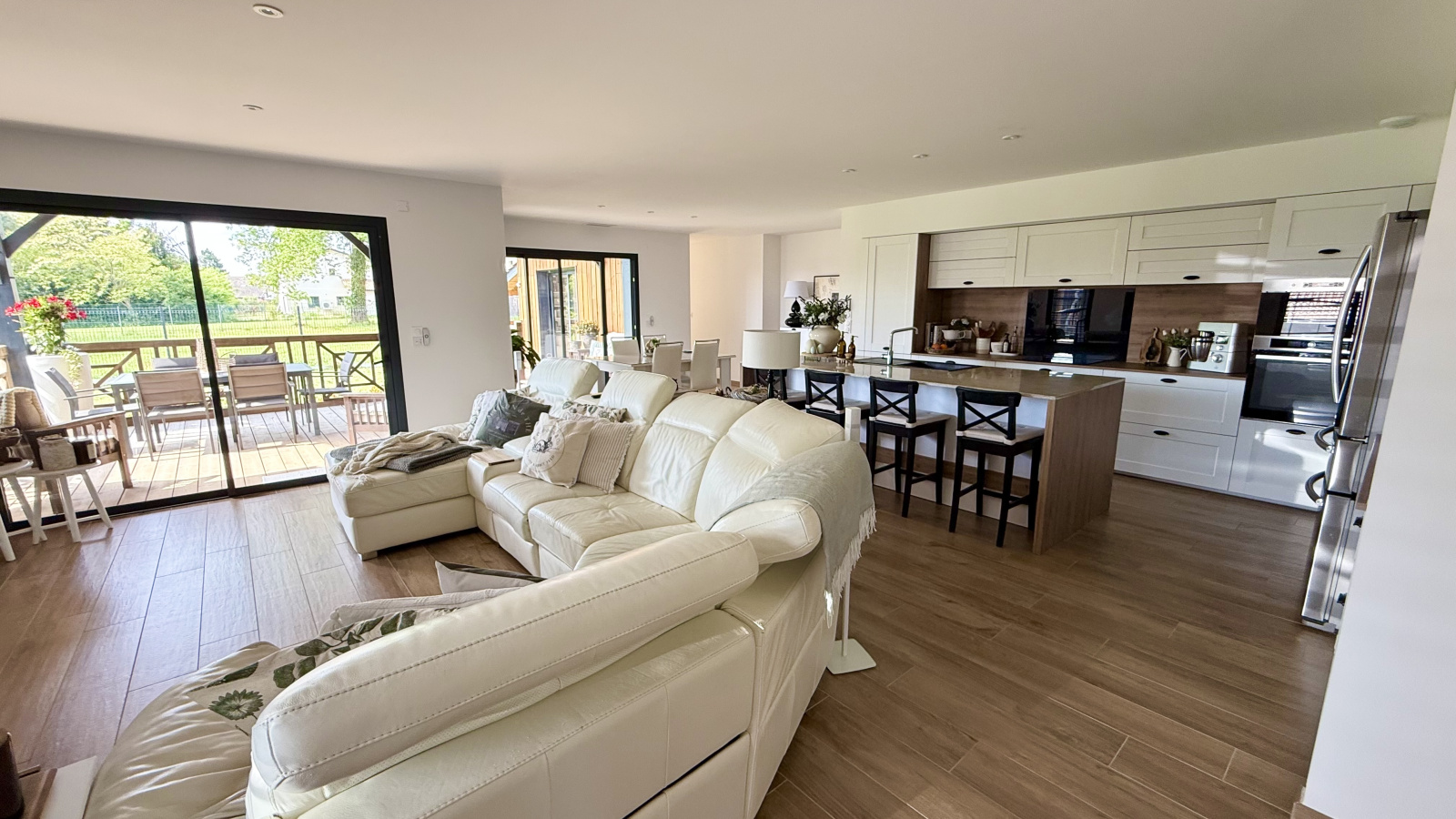 Mesurant 158m2 elle se compose d'une entrée, une immense et lumineurse pièce de vie de 64m2 avec cuisine ouverte et équipée, 3 suites, l'une avec salle de bains et dressing, les 2 autres avec salle d'eau et dressing, chacune avec WC. Dressing supplémentaire indépendant, bureau, cellier et WC invités.