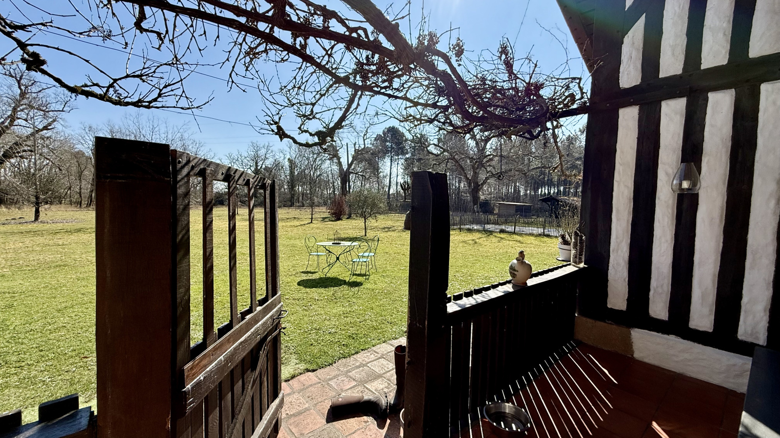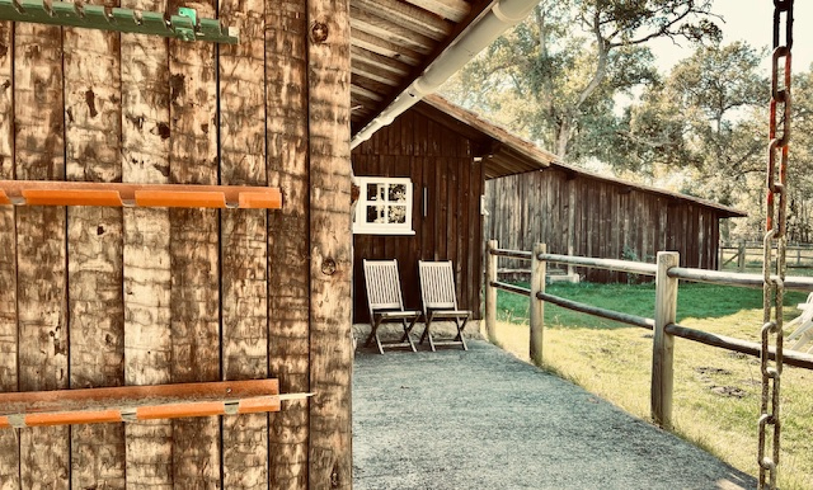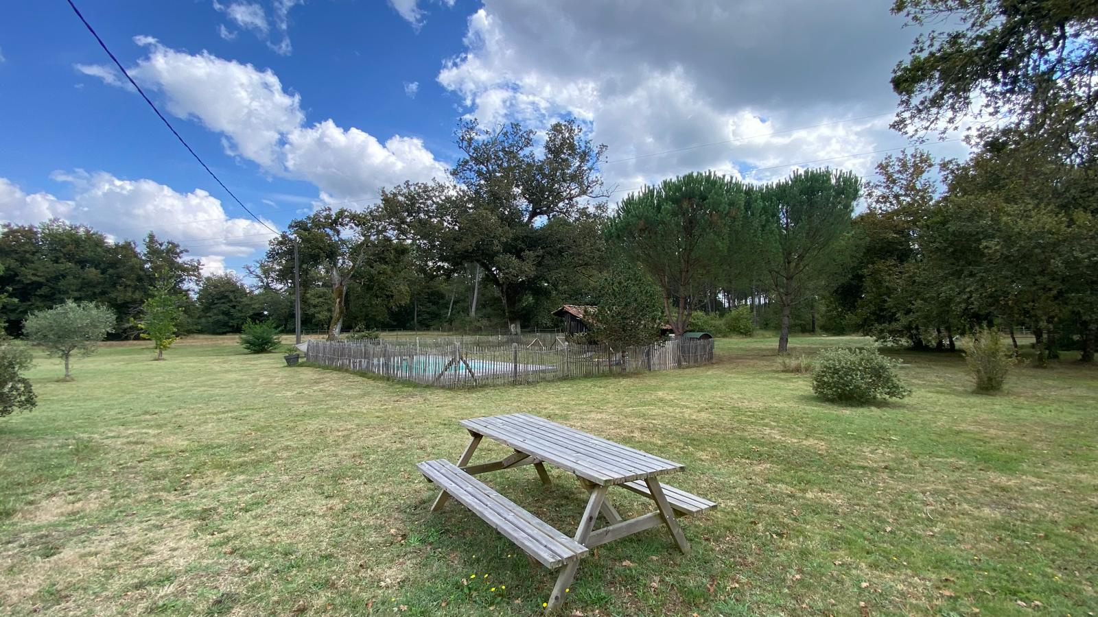 Grande dépendance en bois de 150m2. Carport attenant de 60m2. Loge à cochon. Puits. Four à pain. 4 box à chevaux avec coin sellerie.