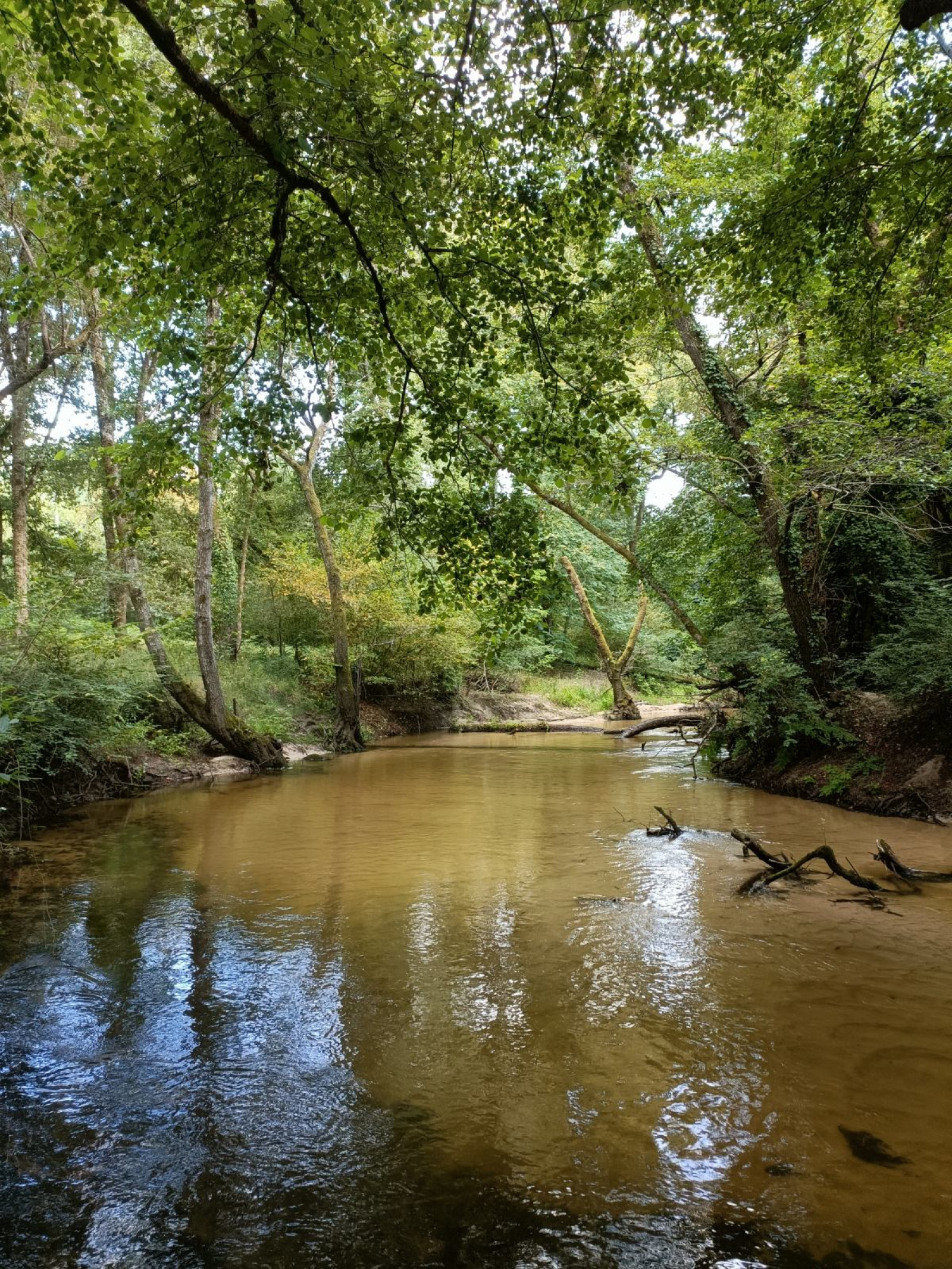 Environnement calme et verdoyant au bord de la rivière.