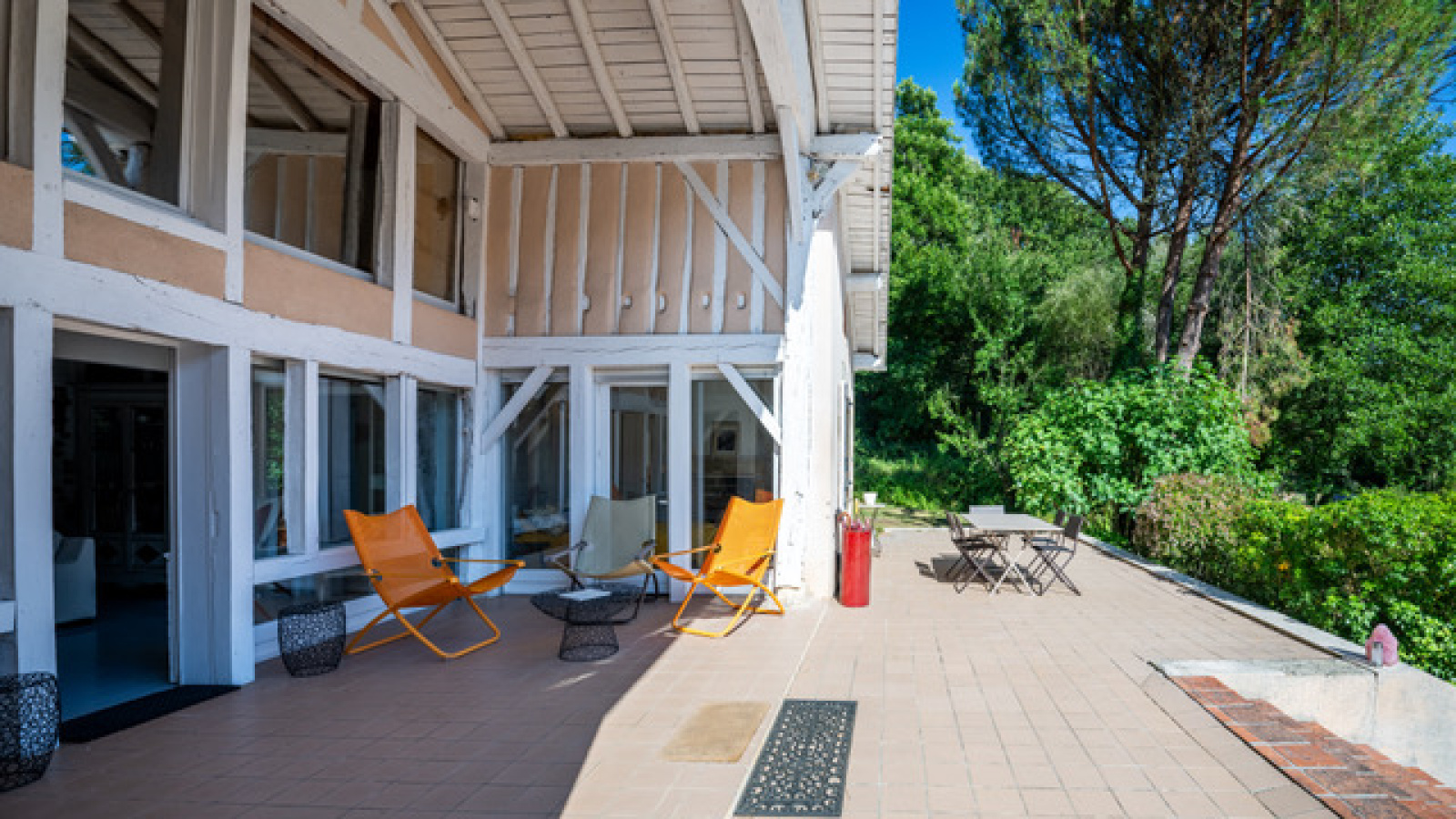 L'habitation principale est une landaise très lumineuse d'environ 150m2 composée au rdc d’une cuisine, d’un séjour avec poêle à bois, de 2 chambres, d’un espace bureau, d’une salle d'eau et d’un grand cellier. A l'étage un grand palier/mezzanine et une chambre avec une belle charpente apparente.