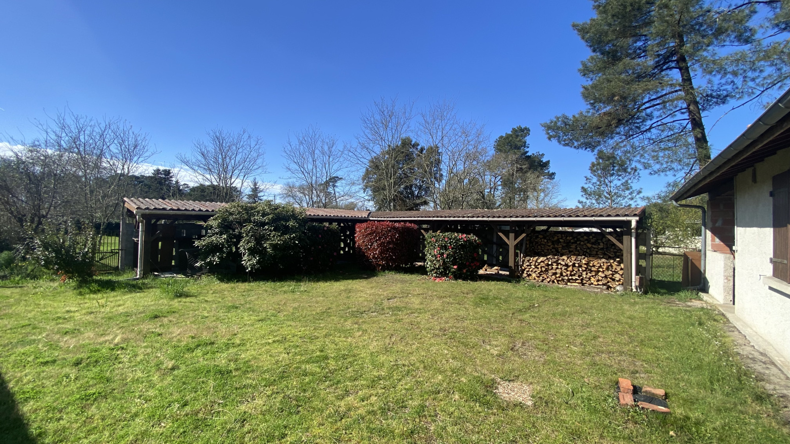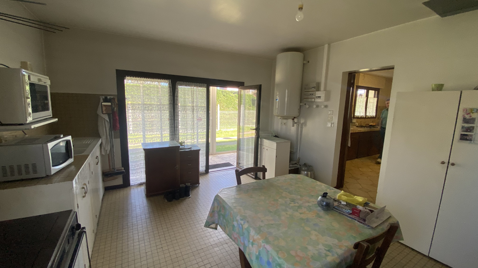 Maison de plain pied composée d'une entrée, séjour/salle à manger avec insert, cuisine et grande arrière cuisine/cellier/buanderie, dégagement, 3 chambres, salle de eau avec douche et baignoire. WC indépendant. Veranda côté nord et belle terrasse en béton lavée au sud. Garage avec auvent, bûcher,