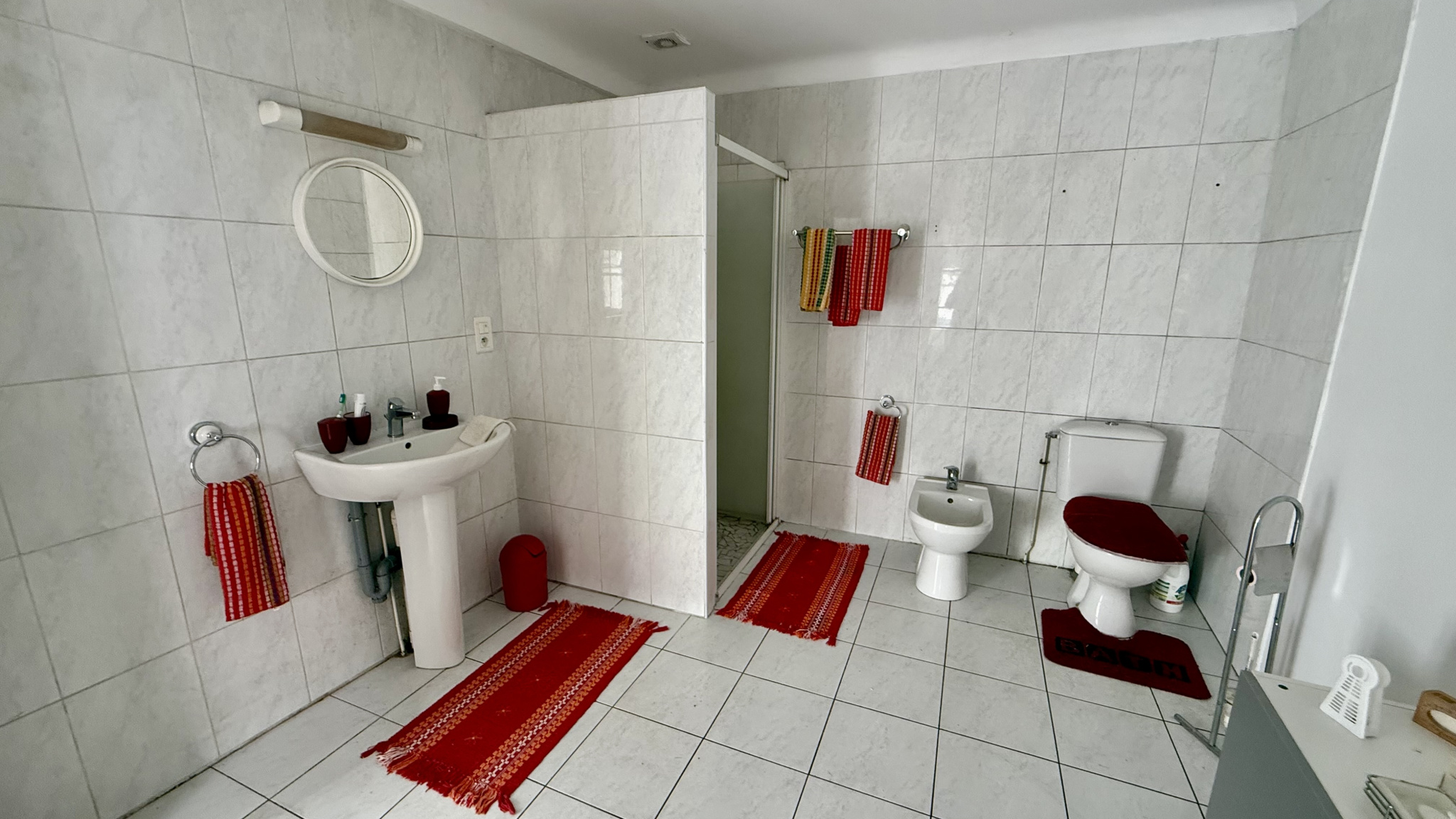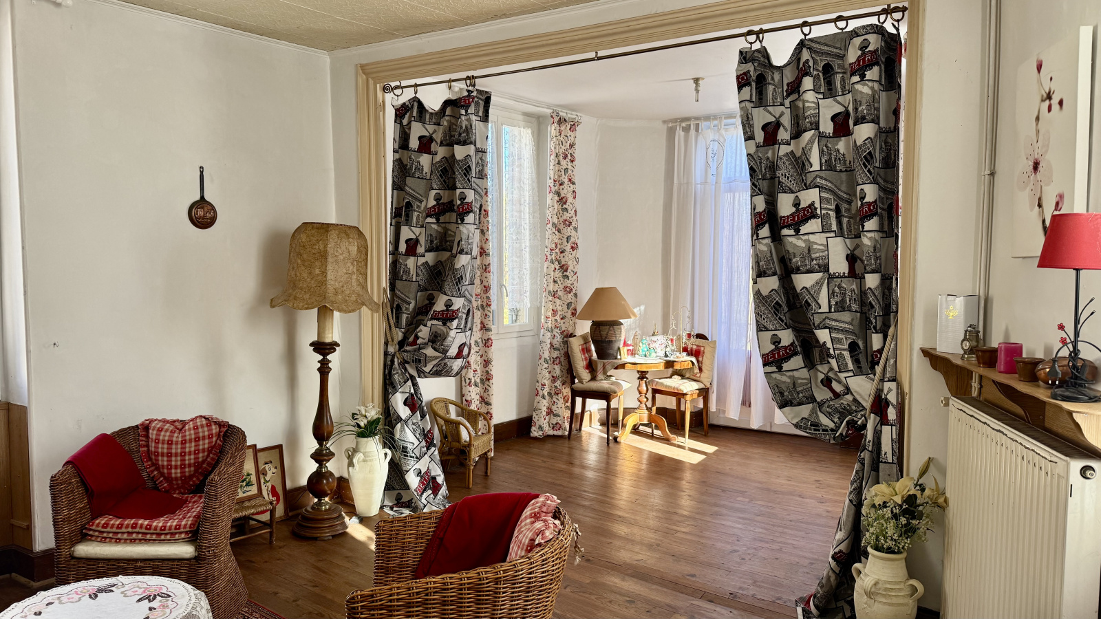 Carreaux de ciment, carreaux de gironde. Parquet ancien. Chaudière gaz et radiateurs électriques.