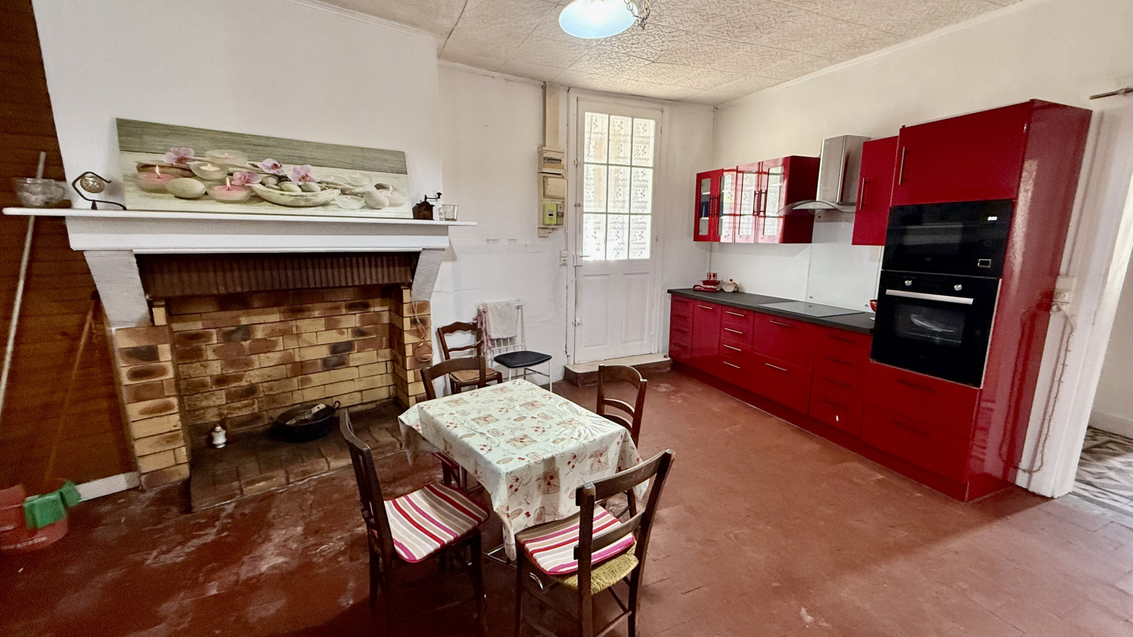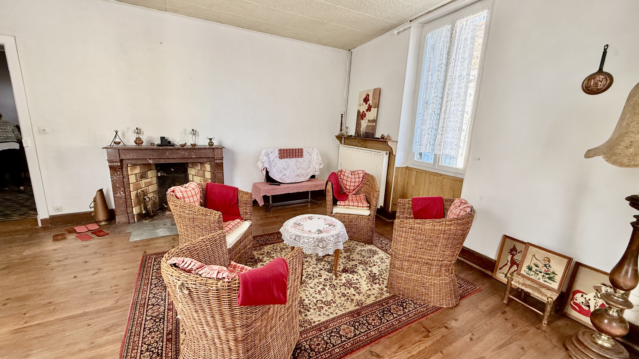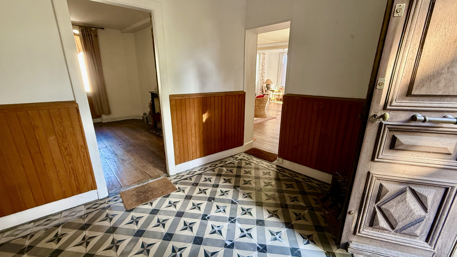 Carreaux de ciment, carreaux de gironde. Parquet ancien. Chaudière gaz et radiateurs électriques.